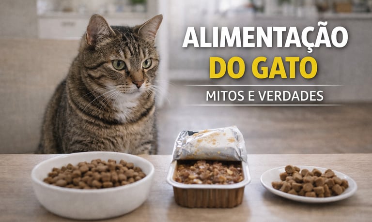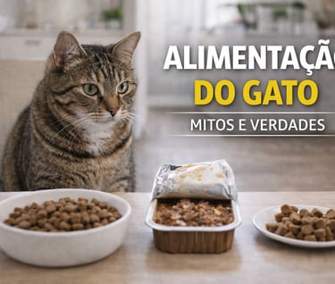 Descubra os mitos e verdades sobre a alimentação de gatos, incluindo ração seca, úmida e petiscos, e saiba como alimentar corretamente.