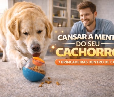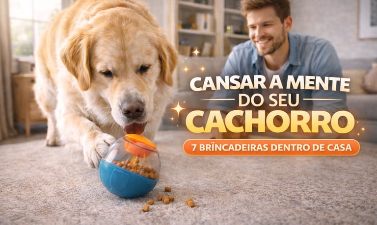 Veja 7 brincadeiras que cansam mentalmente seu cachorro dentro de casa e ajudam a reduzir ansiedade e destruição de objetos.